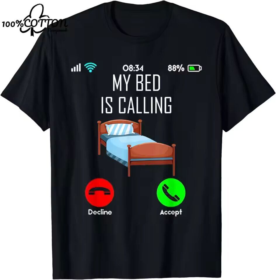 【送料無料◎】 D 夏面白い私のベッドは呼んでいるグラフィックコットン Tシャツ男性女性服