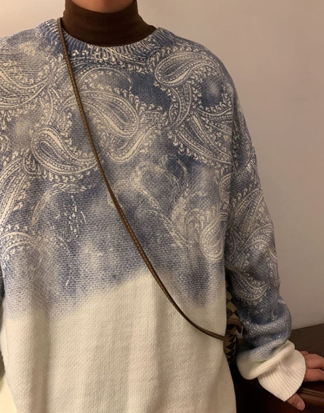 サイズL ペイズリー グラデーション ニット オーバーサイズ 青 白 韓国