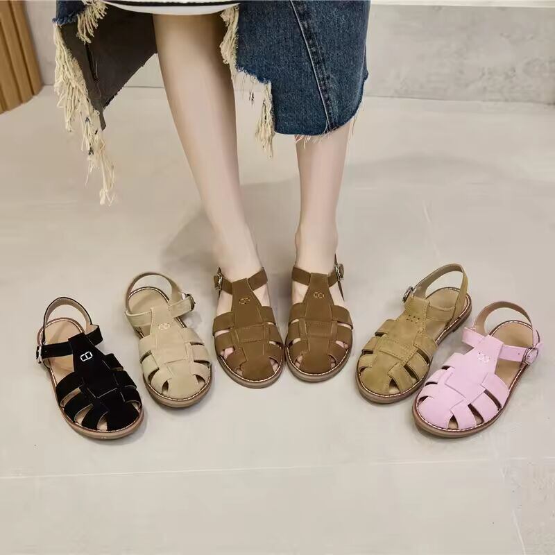 【送料無料◎】 AIYUQI フラットソールレトロ本革中空包頭サンダル女性の 2026 新しい中空豚ケージ女性のサンダル