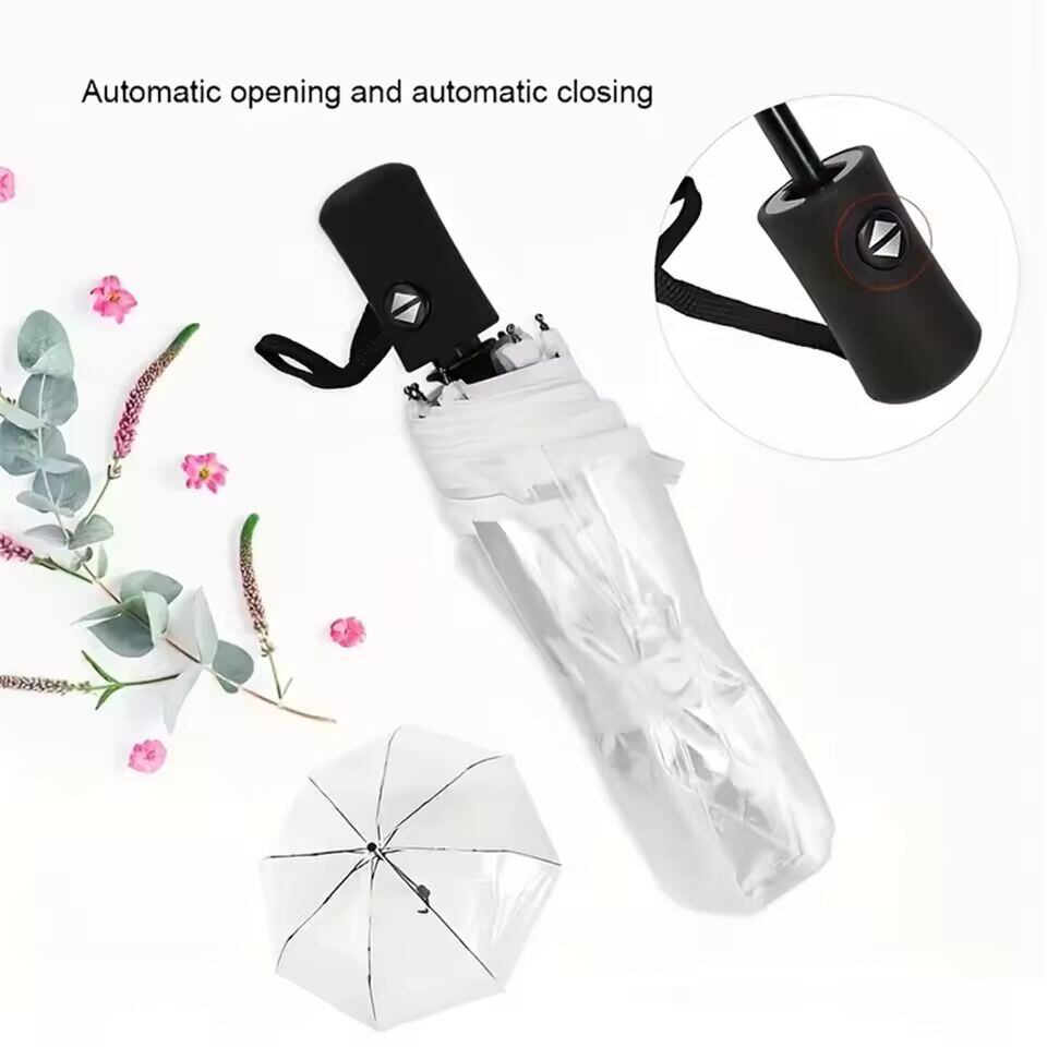 【送料無料◎】 1 個の全自動透明コンパクトポータブル自動三つ折り傘、ファッショナブルでシンプルなスタイルの透明 wi