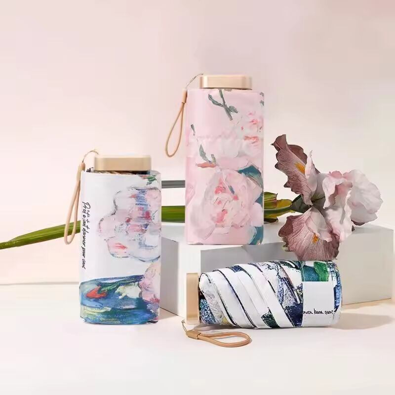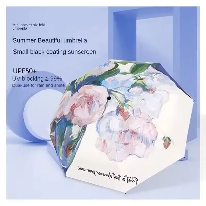 【送料無料◎】 日焼け止めパラソル: UVカット付きの屋外便利な6つ折り傘、ポータブルでスタイリッシュな女性用日傘
