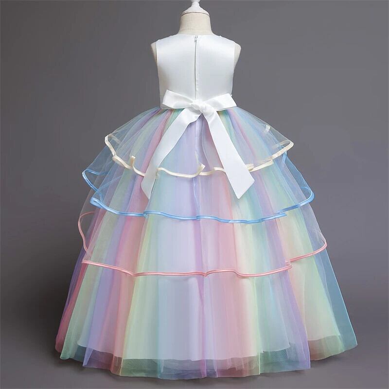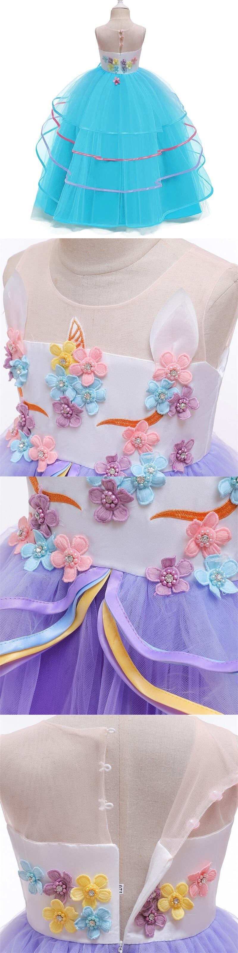 送料無料 キッズユニコーンドレスガールズフラワーアップリケボールガウンリトルガールドレスパーティーの子供たち フラワーデザイン キッズ 子供 ベビー 赤ちゃん AE3656546031108518