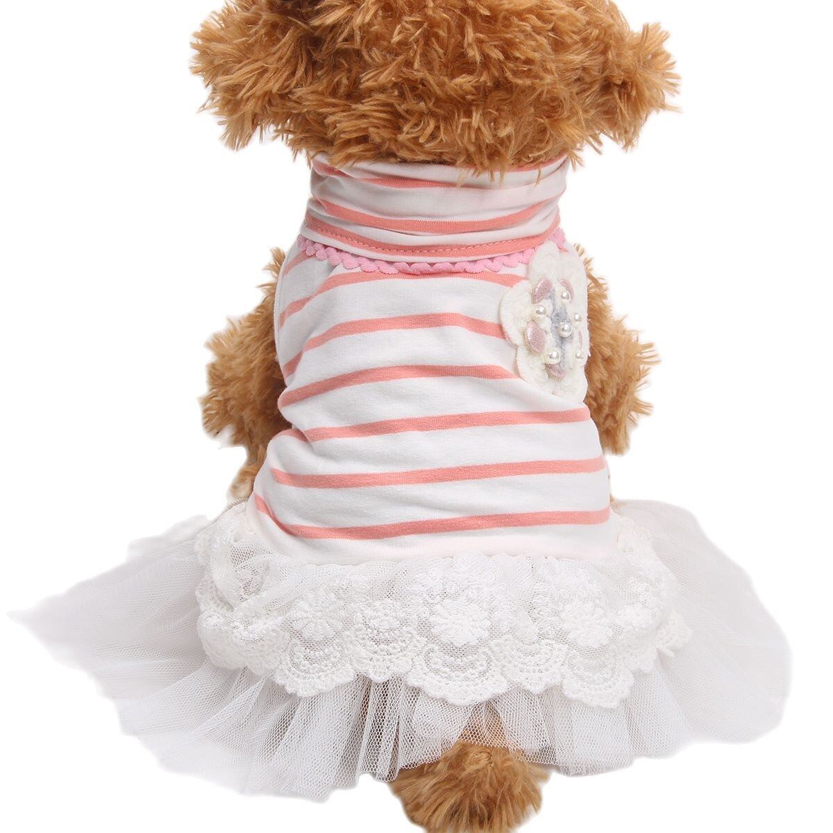 送料無料 ペット関連 縞模様の犬猫ドレス T シャツ ネック カラー & フラワー ペット 子犬 春夏アパレル スプリング 春物 サマー 夏物 ストライプ Tシャツ フラワーデザイン AE121233220099458021263 | mihatudai(みはつばい)ネットショッピングならmihatudai