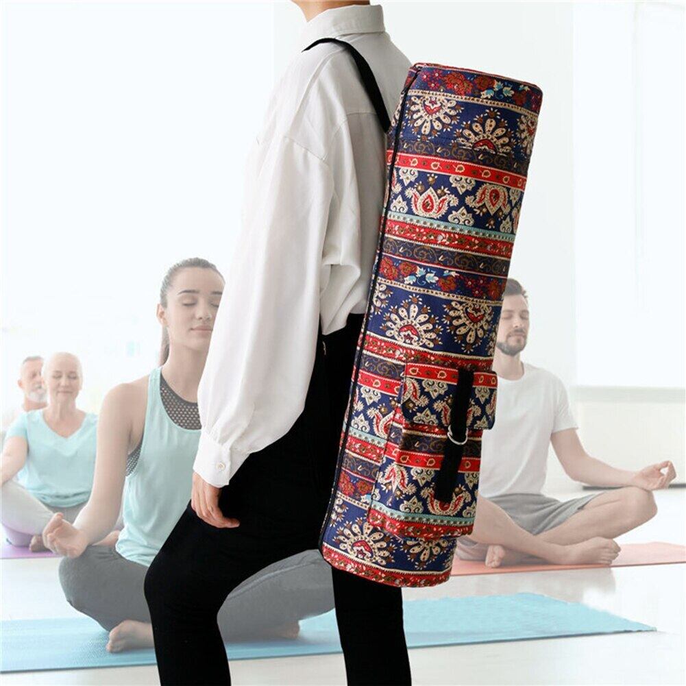 送料無料 アウトドア プリントジムマットカバーバッグ多機能キャンバスアウトドアヨガバッグポータブルシンプル軽量ポケット付き男性女性 AE122332212969170881