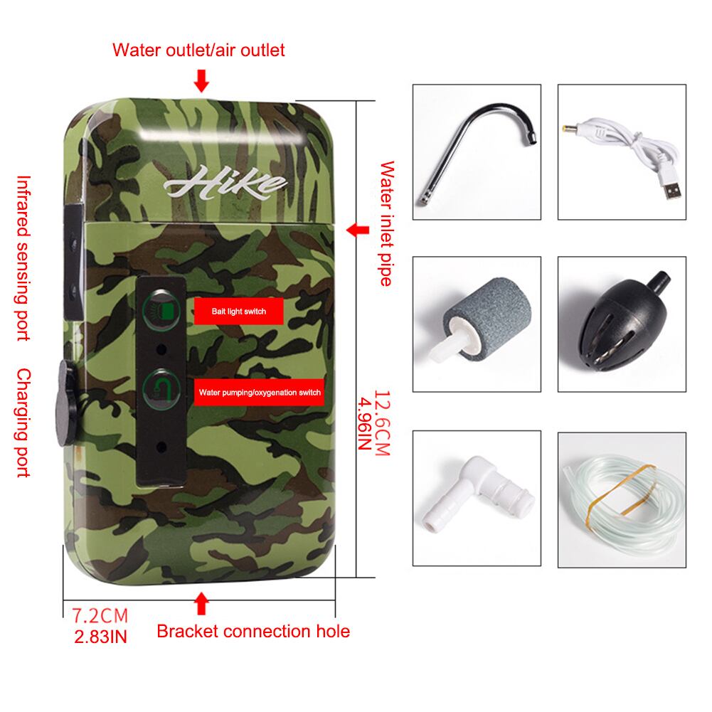 送料無料 アウトドア 釣り酸素ポンプポータブル釣り酸素水ポンプインテリジェントセンサー省エネ LED ライトアウトドアアクセサリー AE122332235051822746
