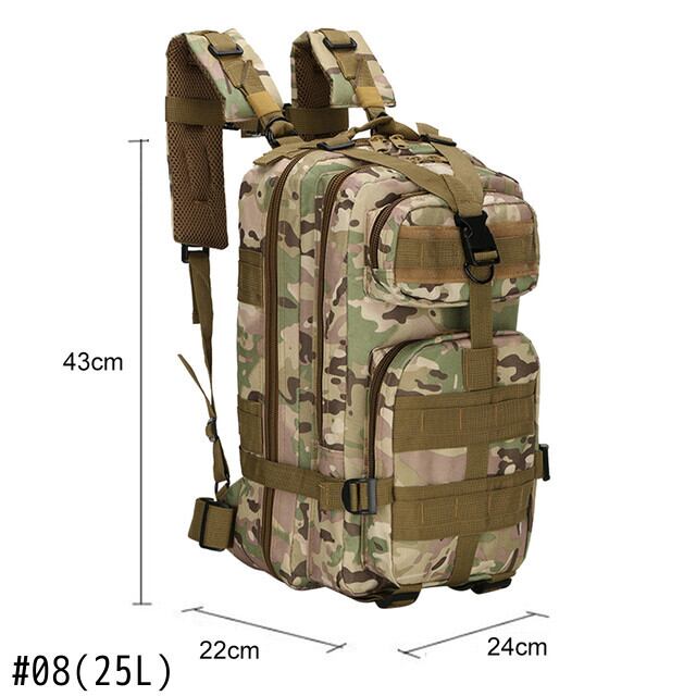 色:01(アーミーブラック80L),02(迷彩A80L),03(迷彩B80L),04(カモフラージュC80L),05(ジャングルデジタル80L),06(25L),07(25L),08(25L),09(25L)