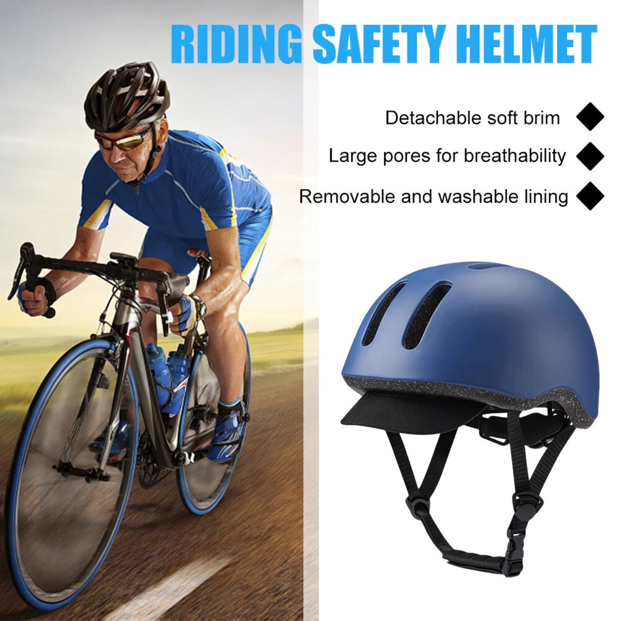 送料無料 アウトドア 調節可能な自転車ヘルメット、通気性、軽量、つば保護ギア付き、自転車電動スクーター乗馬安全キャップ アジャスタブル AE122332212412451765