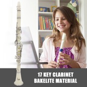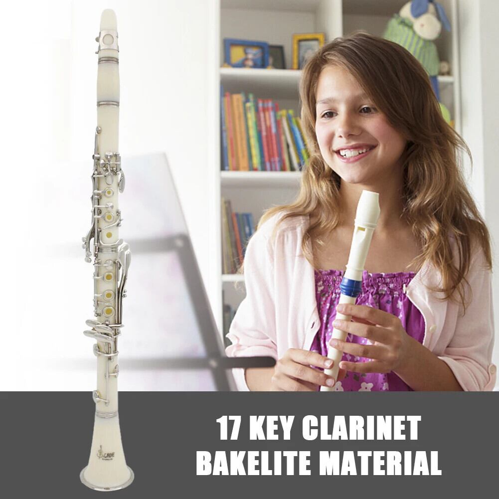 送料無料 アウトドア Bb クラリネット 17 キー ケース付き クラリネット セット 白手袋/クリーニングクロス オーケストラ 楽器 初心者 学生 ホワイト AE122332255733753304
