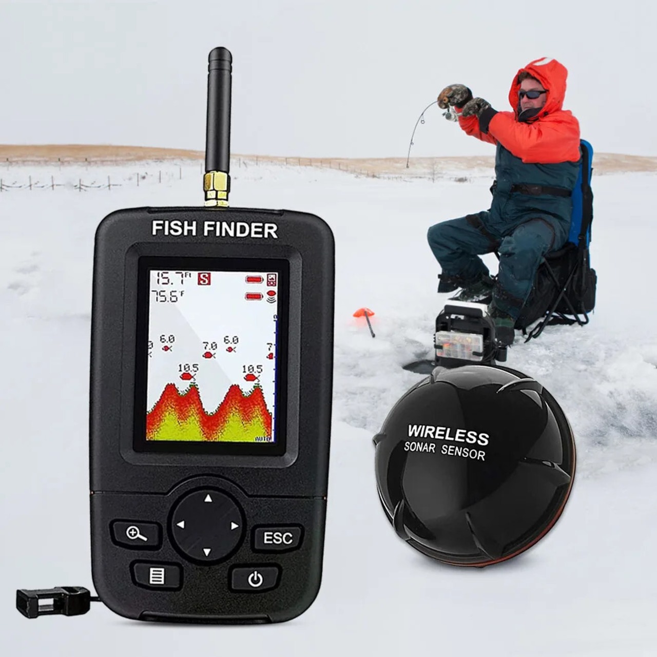 送料無料 アウトドア ソナー オーシャン リバー レイク エコー サウンダー ポータブル ワイヤレス フィッシング ルアー エコー サウンダー ハンドヘルド 45 メートル/147フィート 125KHZ 氷釣り 海 AE122332286469825527