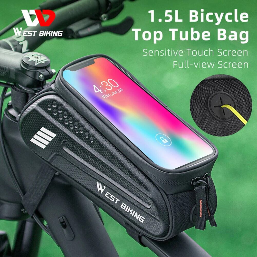 送料無料 アウトドア WEST BIKING 自転車フロント携帯電話ホルダー タッチスクリーン トップチューブ ハンドルバーバッグ 7インチ 電話ケース 防水 イヤホン穴付き AE122332286738315226