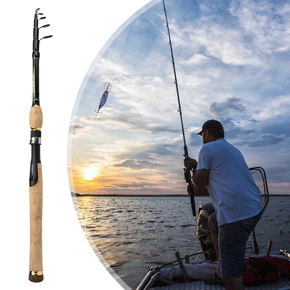 送料無料 アウトドア ポータブル釣竿木製ハンドルカーボンファイバー釣竿軽量格納式釣竿釣具 AE122332268794371254