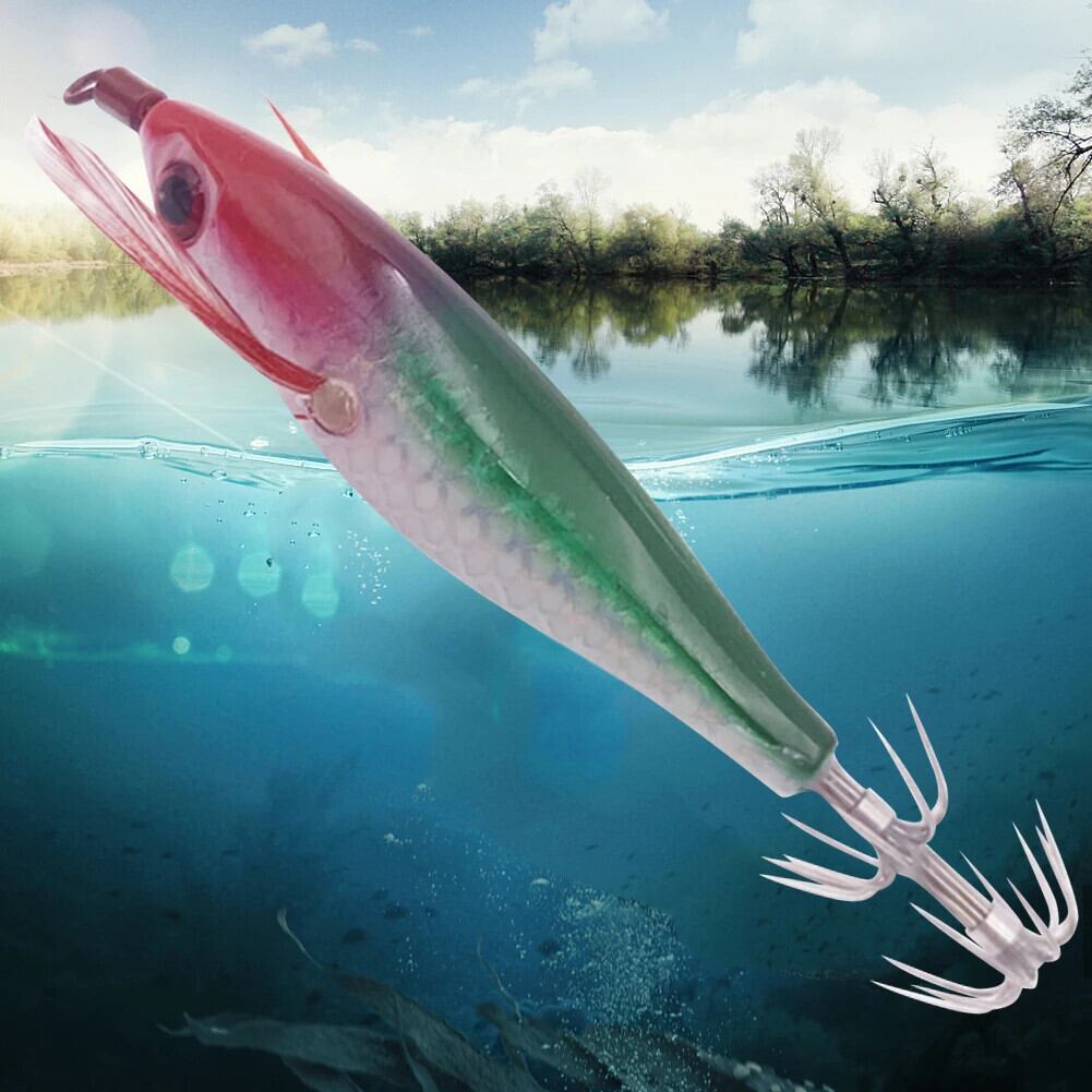 送料無料 アウトドア 木製エビルアー ルアーフック イカフック付き釣具 イカジグ餌 海釣り 淡水 海釣り AE12233221731758411