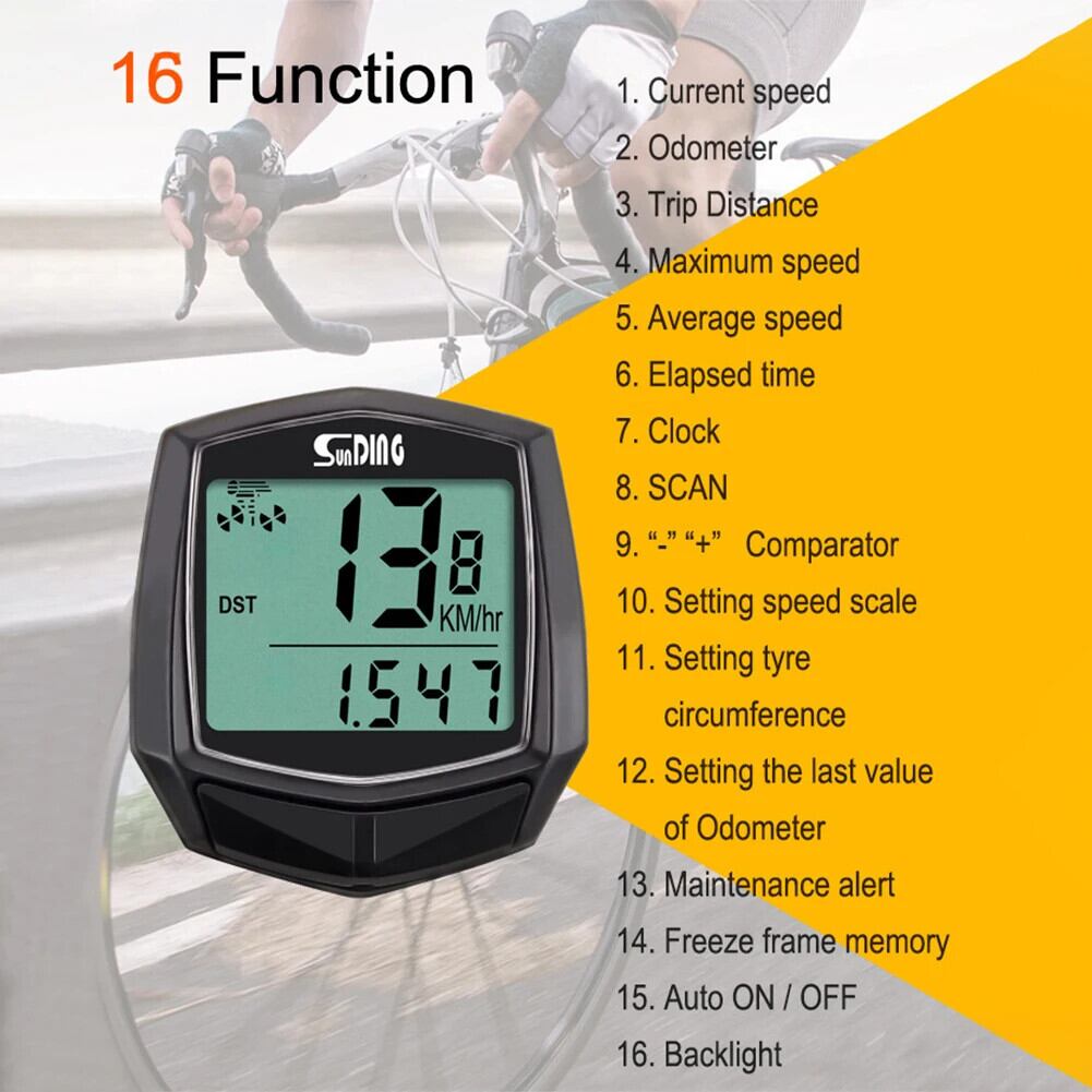 送料無料 アウトドア バイクコンピュータ有線自転車走行距離計スピードメーター防水ストップウォッチ防水多機能サイクリングアクセサリー レッド マルチファンクション AE12233223657126228