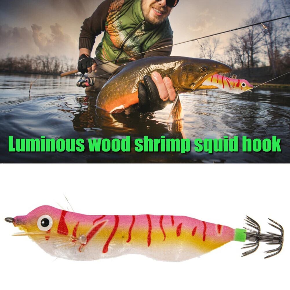 送料無料 アウトドア 103 ミリメートル LED 発光木製エビ餌イカジグシミュレーション釣りルアータックル AE122332272167985523