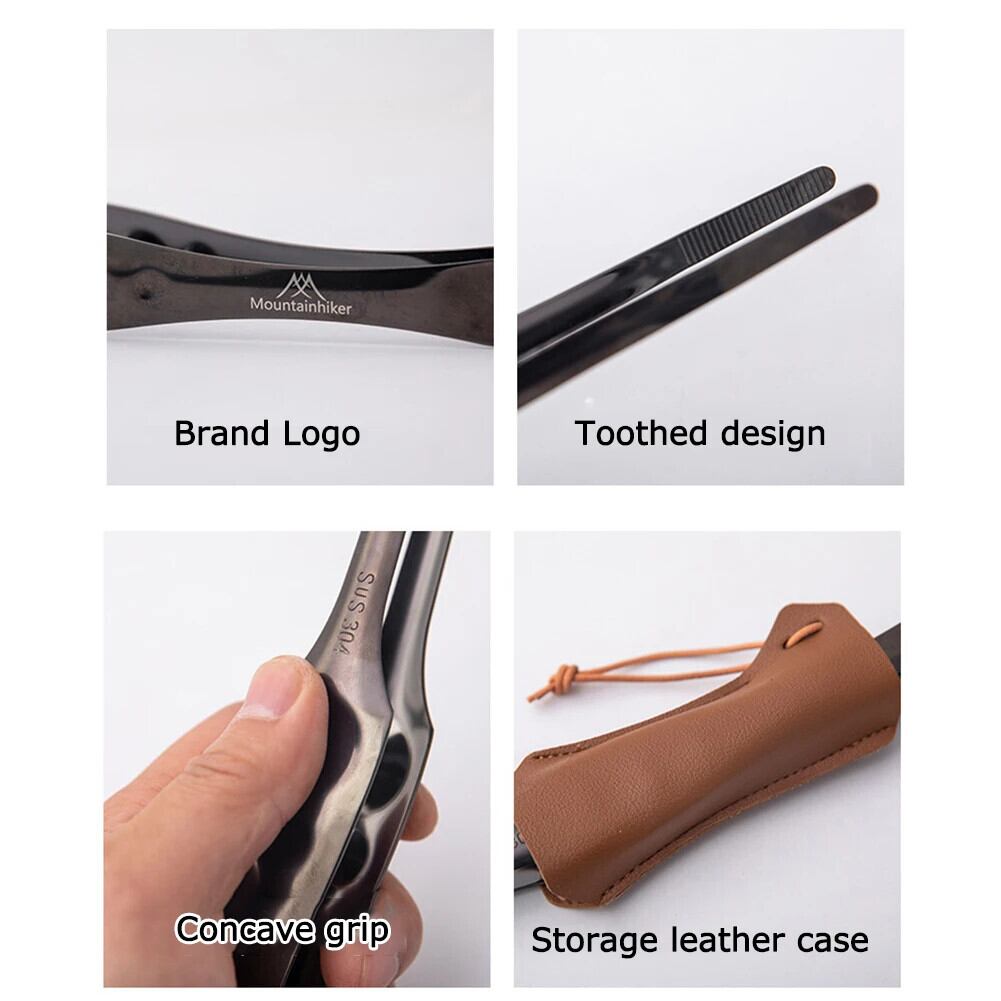 送料無料 アウトドア ステンレス鋼ステーキバーベキュートングノンスティックバーベキューグリルトングレザーカバー付きキッチンツールガジェットアウトドアキャンプピクニック AE12233221608735123