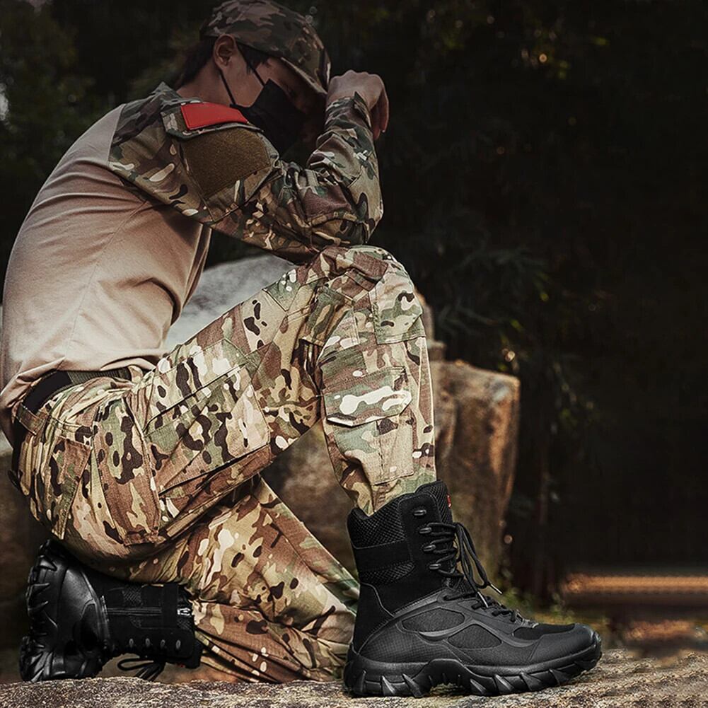 送料無料 アウトドア 男性ブーツ革防水レースアップミリタリーブーツ男性冬足首軽量靴男性冬ノンスリップ シューズ ウィンター 冬物 レザー AE122332279803380929