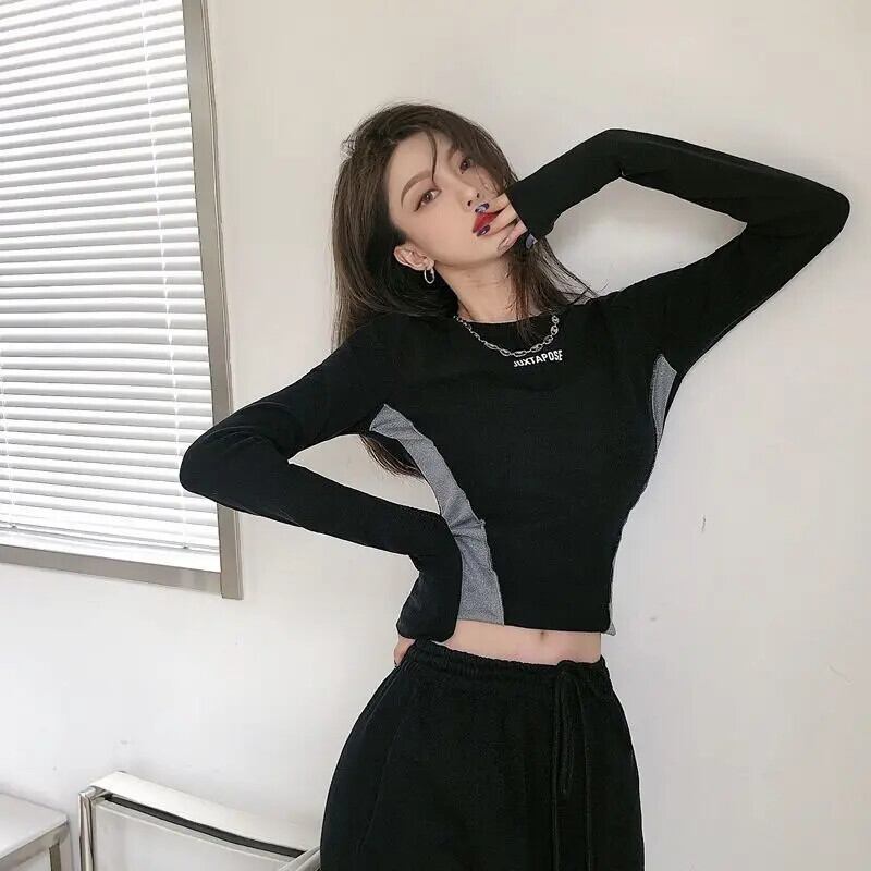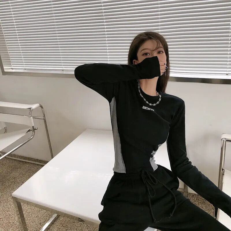 送料無料 アパレル Deeptown Y2k コケット美的 Techwear 長袖 Tシャツ女性スタイルコルセットパッチワーク Tシャツセクシーなスリムブラッククロップトップス ロング AE121288787763120282591 | mihatudai(みはつばい)ネットショッピングならmihatudai