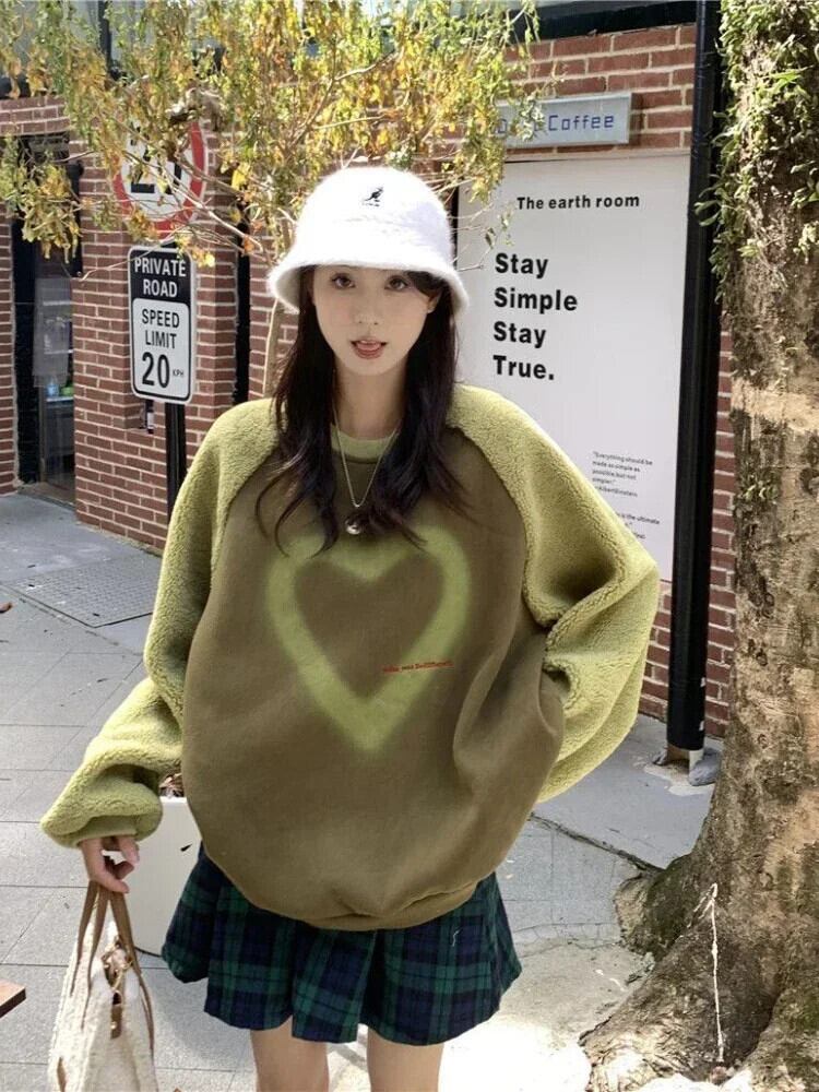 送料無料 アパレル Deeptown 原宿スタイルピンクスウェット女性ヴィンテージパッチワークハート長袖プルオーバー Y2k オーバーサイズルーズグリーントップス ロング シャツ かわいい ビンテージ AE1212887877311351313 | mihatudai(みはつばい)ネットショッピングならmihatudai