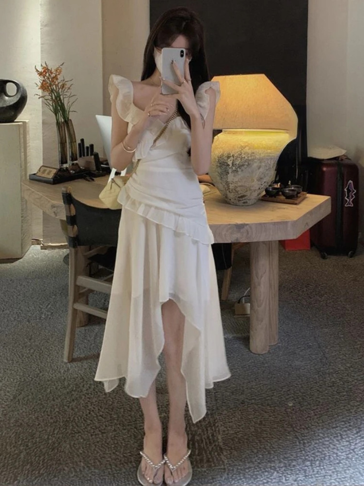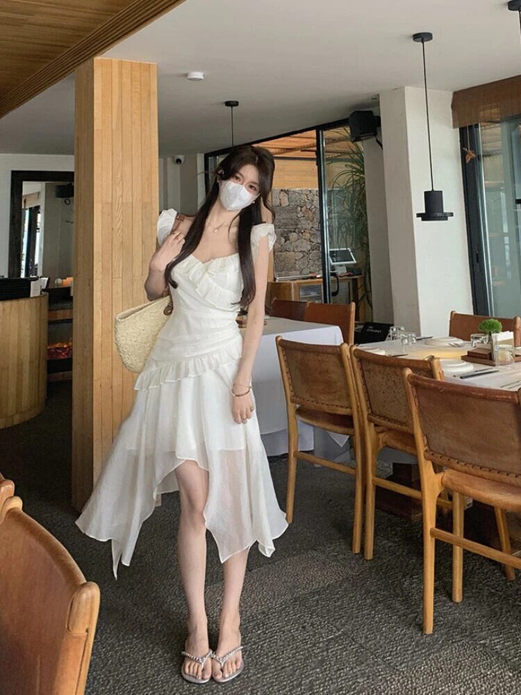送料無料 アパレル Deeptown ホワイトドレス女性 Y2k 美的フェアリーコアフリル不規則なワンピースチュニックミディ mal ドレス夏 ラッフル サマー 夏物 AE121288787728875221986 | mihatudai(みはつばい)ネットショッピングならmihatudai
