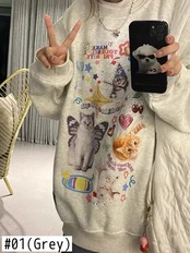 送料無料 アパレル Deeptown Y2k グレー猫スウェット女性スタイルかわいい長袖プルオーバー原宿ストリートオーバーサイズルーズトップス ロング シャツ 大人ガーリー スウィート キュート カジュアル AE121288787751386966565 | mihatudai(みはつばい)ネットショッピングならmihatudai