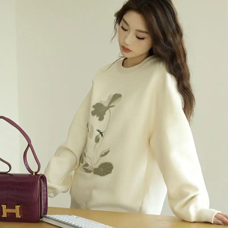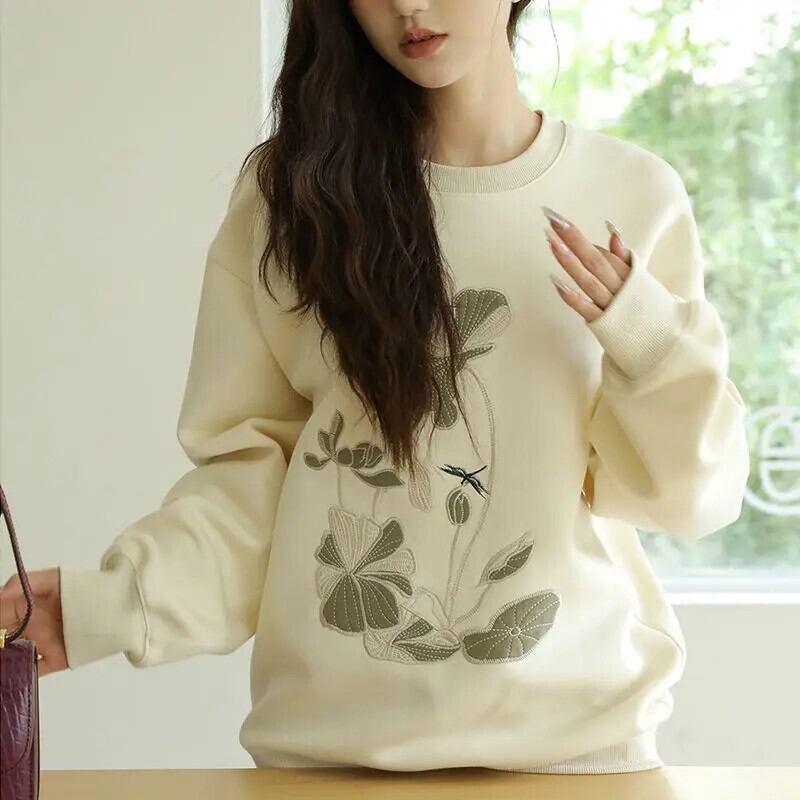 送料無料 アパレル Deeptown スタイル花柄ベージュスウェット女性ヴィンテージ長袖プルオーバー原宿ストリートプラスベルベットオーバーサイズトップス ロング シャツ かわいい ビンテージ AE121288787795225519326 | mihatudai(みはつばい)ネットショッピングならmihatudai