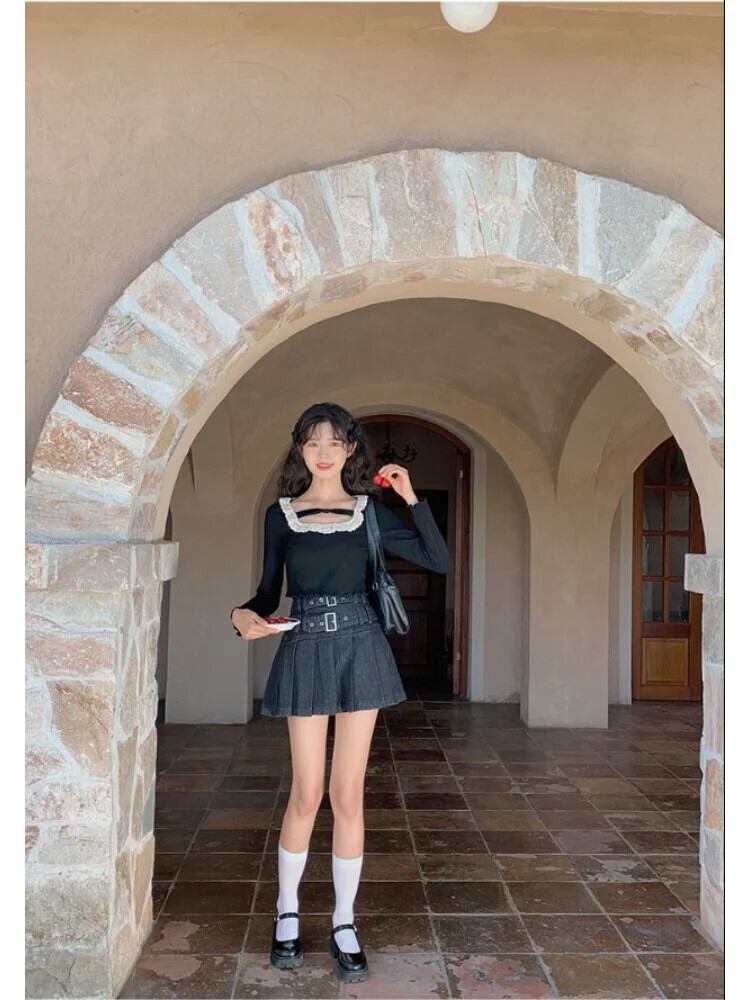 送料無料 アパレル Deeptown 甘いレースの女性のクロップトップス Y2K ソリッド中空アウト長袖シャーリング Tシャツフェアリーコアスリム Tシャツ ロング 大人ガーリー スウィート キュート カジュアル ソリッドカラー AE121288787720967733410 | mihatudai(みはつばい)ネットショッピングならmihatudai