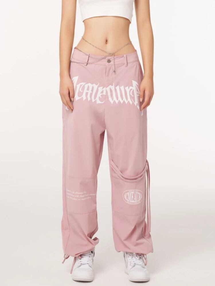 送料無料 アパレル Deeptown ヒップホップ Kpop レターグレーカーゴパンツ女性サイバーストリートワイド脚だぶだぶのズボンアメリカンレトロオーバーサイズパンタロン ワイドレッグ ワイドパンツ AE121288787717889599505 | mihatudai(みはつばい)ネットショッピングならmihatudai