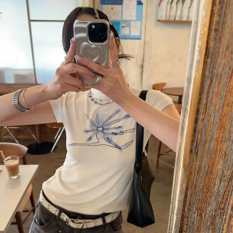 送料無料 アパレル Deeptown アメリカのレトログラフィックプリント白 Tシャツ女性 Y2k 美的半袖 Tシャツ原宿ストリートスリムコルセットトップス ショート ホワイト ハーフスリーブ かわいい AE121288787728397027975 | mihatudai(みはつばい)ネットショッピングならmihatudai