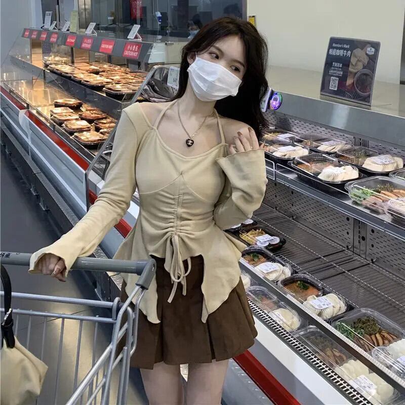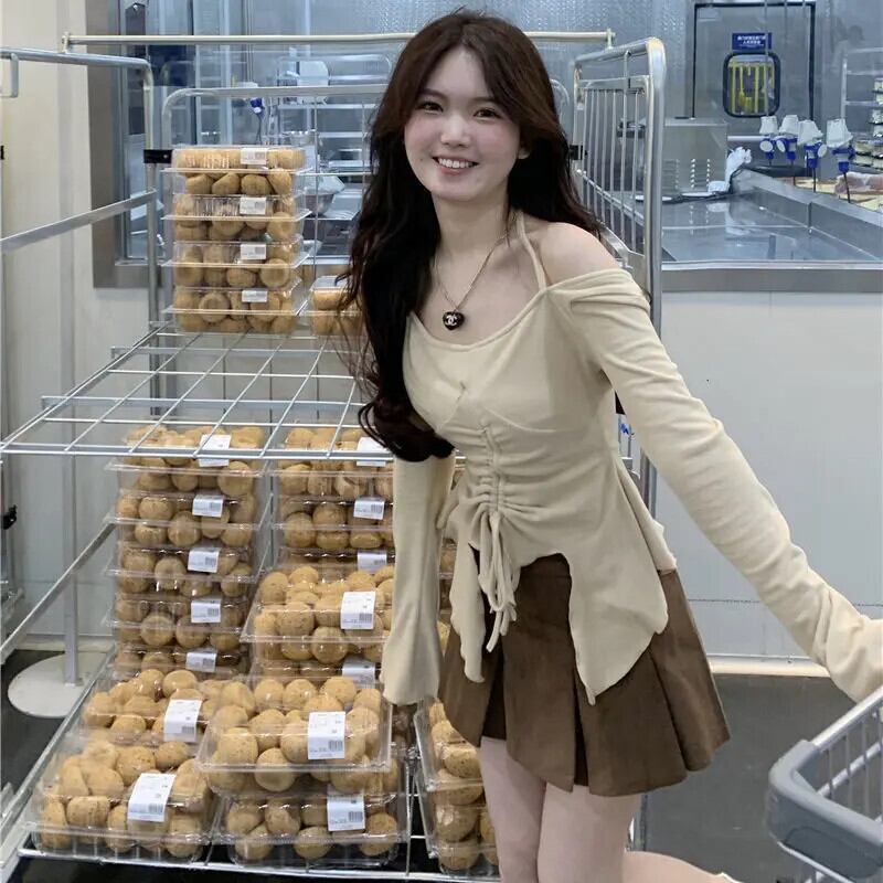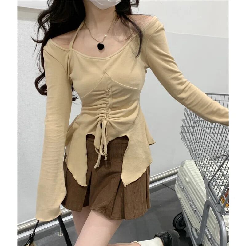 送料無料 アパレル Deeptown Y2k 美的オフショルダーホルターベージュ Tシャツ女性スタイルグランジ不規則な長袖 Tシャツヴィンテージひだトップス ロング ビンテージ AE121288787732025168090 | mihatudai(みはつばい)ネットショッピングならmihatudai
