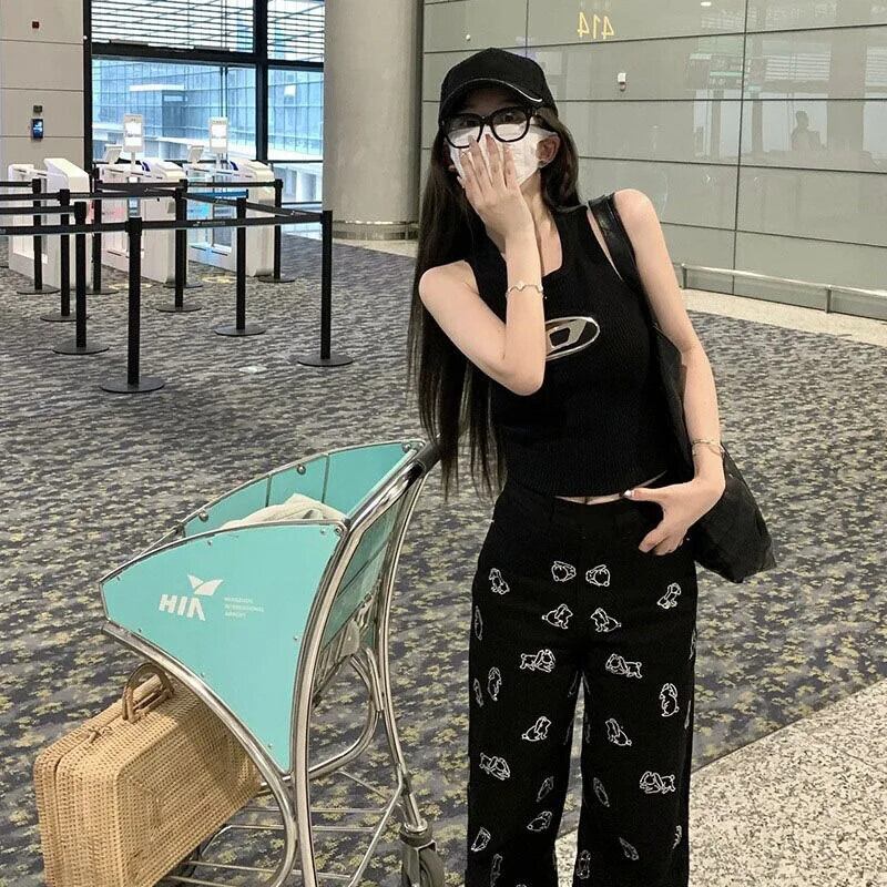 送料無料 アパレル Deeptown ウサギ黒ワイドレッグパンツ女性原宿ストリートオーバーサイズだぶだぶのスウェットパンツヒッピーズボン ブラック かわいい ワイドパンツ AE121288787777531905610 | mihatudai(みはつばい)ネットショッピングならmihatudai