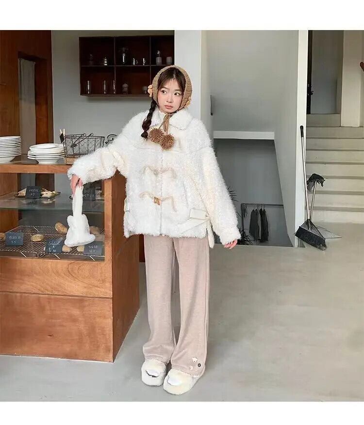送料無料 アパレル Deeptwon ese スタイル起毛パンツ女性甘いかわいいクマワイドレッグだぶだぶ厚いパンツ原宿フリルオーバーサイズパンタロン 大人ガーリー スウィート キュート カジュアル ワイドパンツ AE121288787756132405003 | mihatudai(みはつばい)ネットショッピングならmihatudai