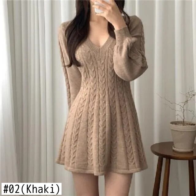 送料無料 アパレル Deeptown ヴィンテージベージュミニチュニックドレス女性スタイルランタンスリーブカーキニットドレスフレンチ Vestidos 冬 ウィンター 冬物 ビンテージ AE12128878776758855171 | mihatudai(みはつばい)ネットショッピングならmihatudai