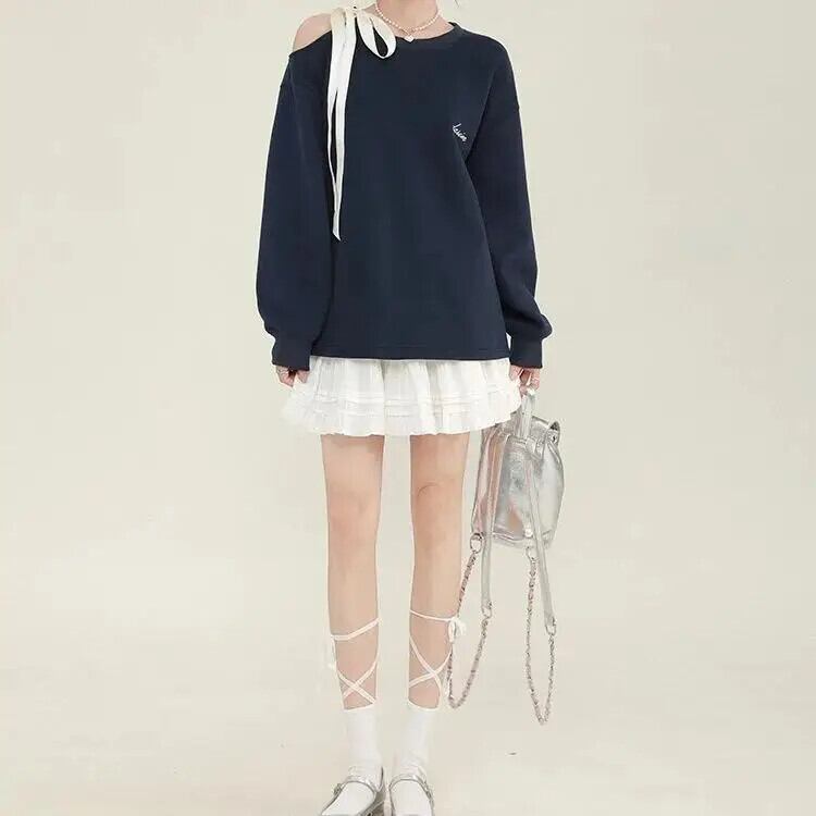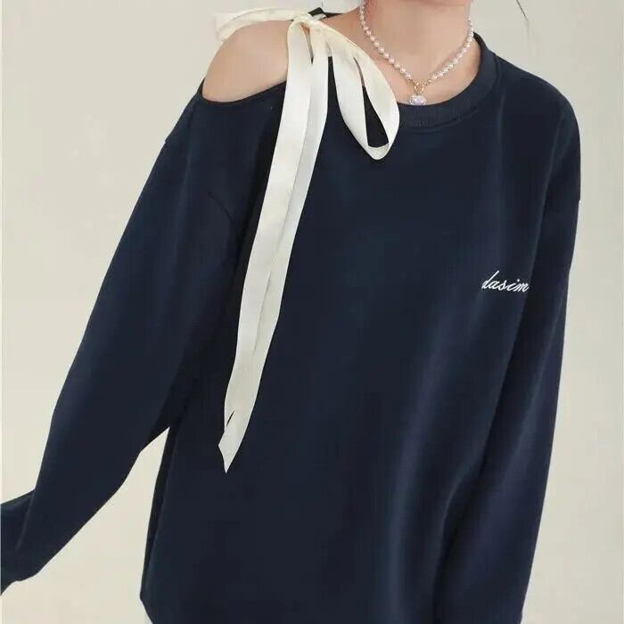 送料無料 アパレル Deeptowm かわいいオフショルダーブルースウェット女性 ese スタイルレースアップ長袖プルオーバー甘いオーバーサイズルーズトップス ロング シャツ 大人ガーリー スウィート キュート カジュアル AE121288787791880744580 | mihatudai(みはつばい)ネットショッピングならmihatudai