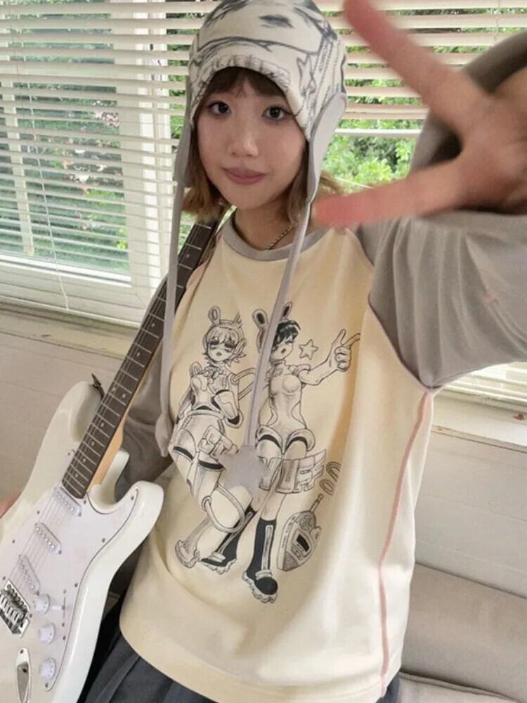 送料無料 アパレル Deeptown 原宿ストリートパッチワークスウェット女性 ses スタイル漫画長袖プルオーバーヴィンテージ Kpop オーバーサイズトップス ロング シャツ かわいい ビンテージ AE121288787736573423139 | mihatudai(みはつばい)ネットショッピングならmihatudai