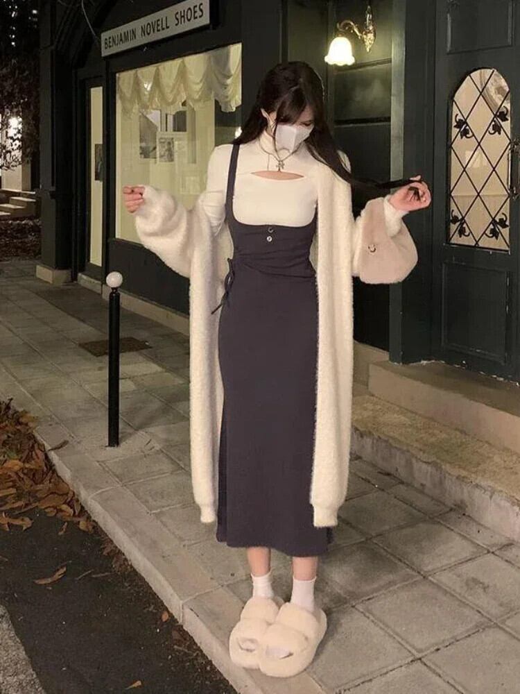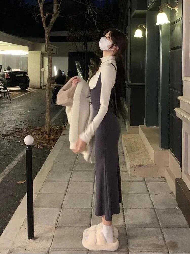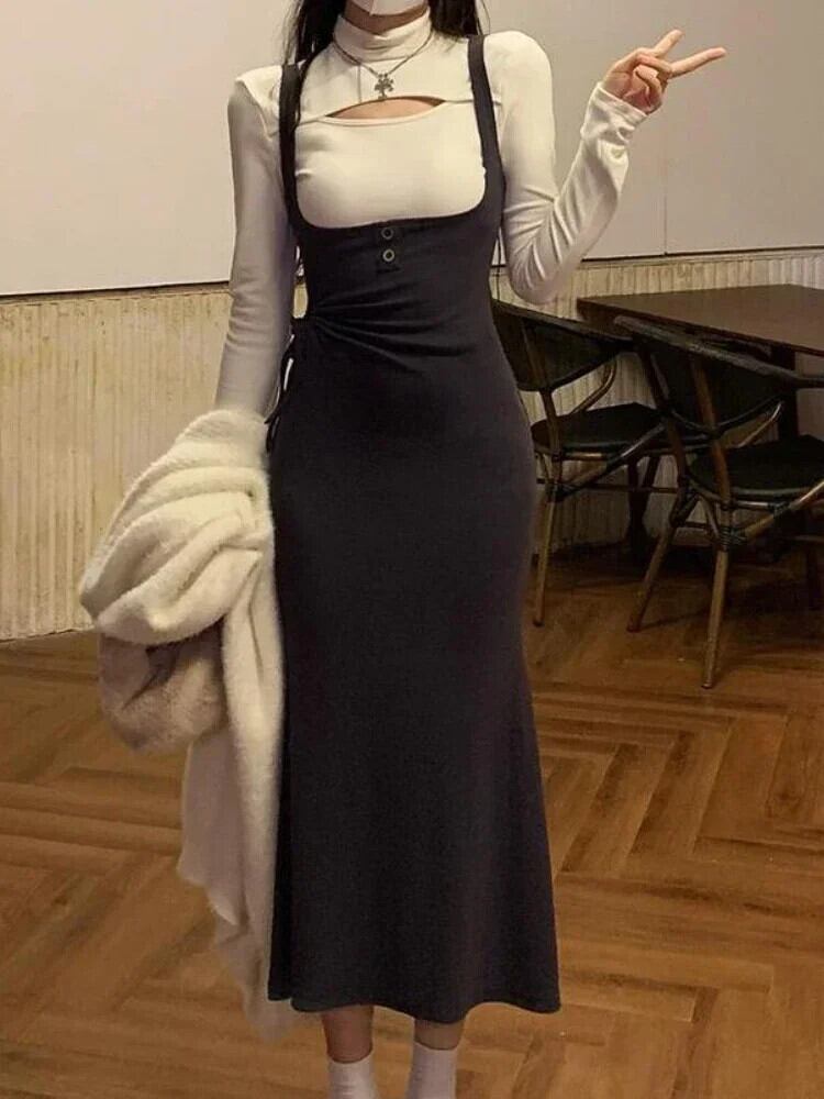 送料無料 アパレル Deeptown スタイルミディツーピースドレス女性コケットセクシーなひだ長袖チュニックドレスセット Y2k トランペット Vestidos 冬 ロング ウィンター 冬物 AE121288787773030033163 | mihatudai(みはつばい)ネットショッピングならmihatudai
