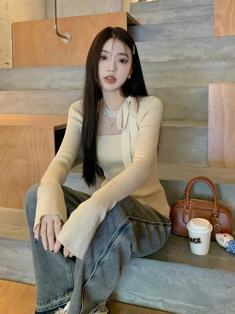 送料無料 アパレル Deeptown Fairycore かわいいベージュニット Tシャツ女性スタイルレースアップ長袖 Tシャツ Y2k 美的スリムコルセットトップス冬 ロング 大人ガーリー スウィート キュート カジュアル ウィンター 冬物 AE12128878777672179224 | mihatudai(みはつばい)ネットショッピングならmihatudai