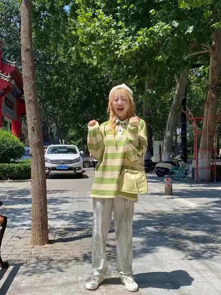送料無料 アパレル Deeptown グリーン Tシャツ女性オーバーサイズ長袖ストライププリント Tシャツ春秋トップスガール ロング スプリング 春物 オータム 秋物 AE121288787773391002870 | mihatudai(みはつばい)ネットショッピングならmihatudai