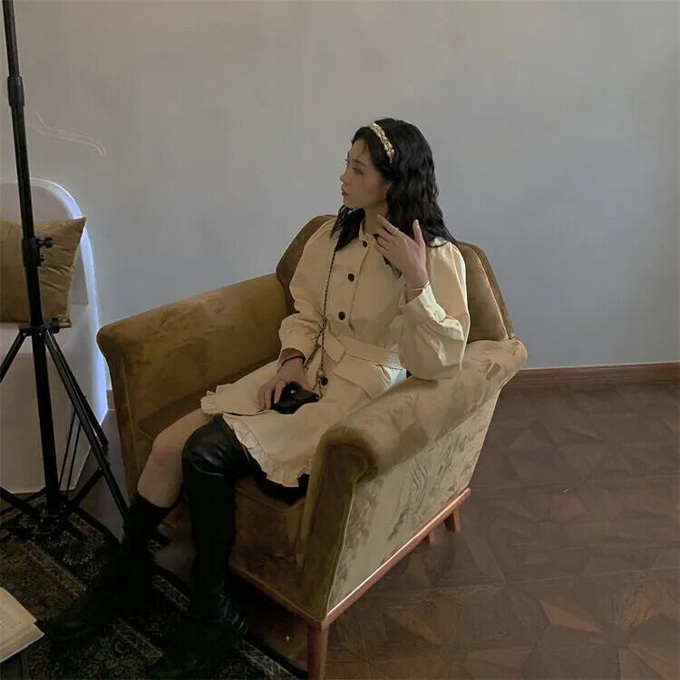 送料無料 アパレル Deeptown スタイルベージュシャツドレス女性ヴィンテージプレッピーフリルワンピースランタンスリーブミニチュニックドレス ラッフル ビンテージ AE12128878771067039951 | mihatudai(みはつばい)ネットショッピングならmihatudai