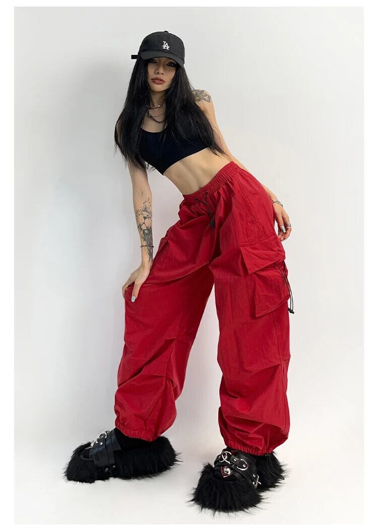 送料無料 アパレル Deeptown サイバー Y2K レッドパラシュートパンツ女性ヒッピーストリートグレーカーゴパンツオーバーサイズ E パンク黒ワイドレッグ Pantalones ブラック ワイドパンツ AE12128878773348201878 | mihatudai(みはつばい)ネットショッピングならmihatudai