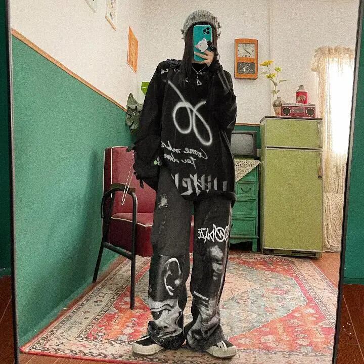 送料無料 アパレル Deeptown ゴシックだぶだぶのジーンズ女性パンクヒッピーストリートプリント Y2K ワイドレッグパンツ原宿グランジデニムパンツヴィンテージ 90s かわいい ワイドパンツ ビンテージ AE121288787712348184966 | mihatudai(みはつばい)ネットショッピングならmihatudai