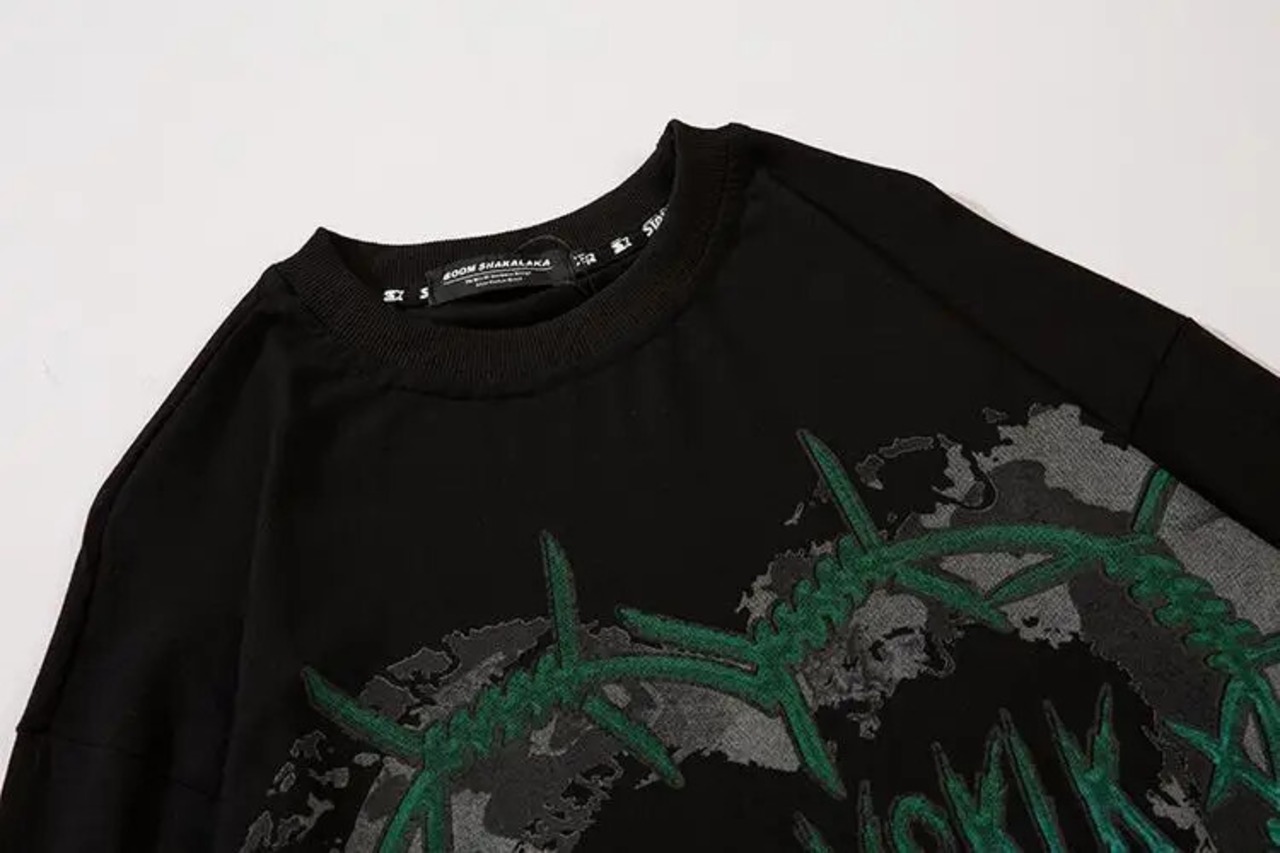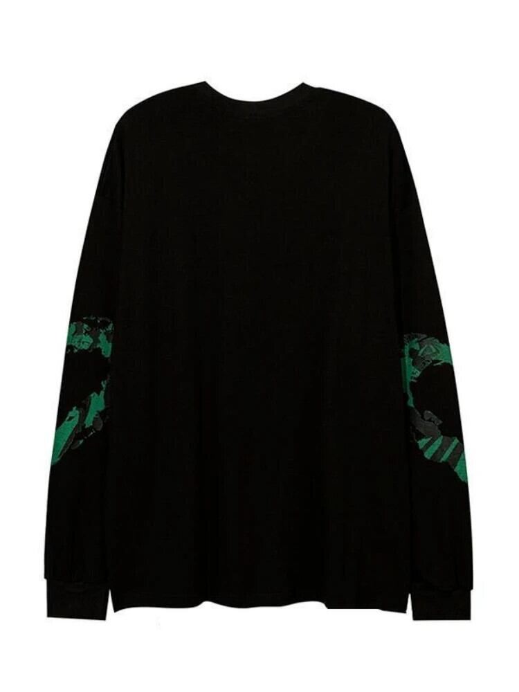 送料無料 アパレル Deeptown ゴシックパンクグリーンプリント長袖 Tシャツ女性グランジオーバーサイズ原宿ストリートヒッピー O ネックブラックトッププルオーバー ロング かわいい Oネック AE121288787797145994006 | mihatudai(みはつばい)ネットショッピングならmihatudai