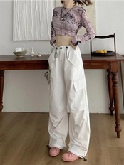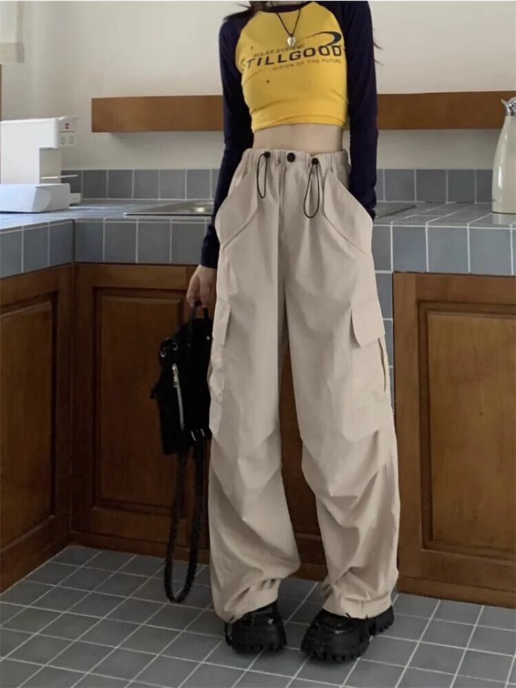 送料無料 アパレル Deeptown Y2k ヒッピーグレーカーゴパラシュートパンツ女性 Kpop ストリートオーバーサイズだぶだぶのズボン原宿ワイドレッグパンタロン かわいい ワイドパンツ AE121288787770853379713 | mihatudai(みはつばい)ネットショッピングならmihatudai