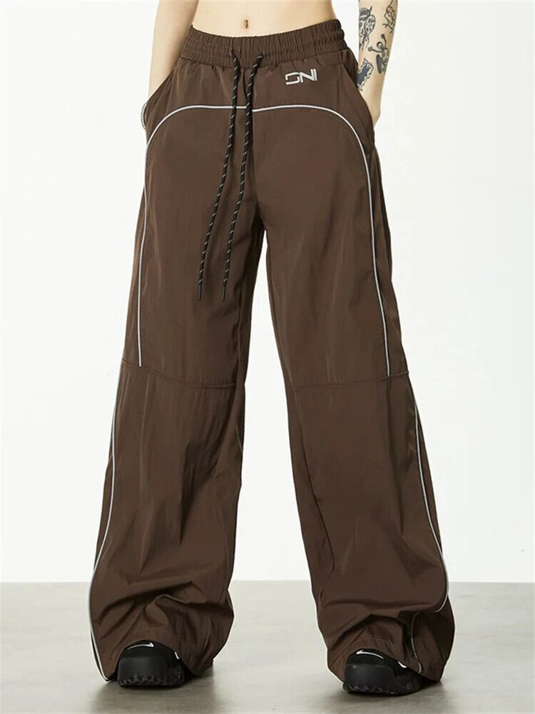 送料無料 アパレル Deeptown Y2K Gorpcore ブラウントラックパンツ女性オーバーサイズヴィンテージストリート黒パラシュートズボン反射ワイドスウェットパンツ ブラック ビンテージ AE121288787760360801865 | mihatudai(みはつばい)ネットショッピングならmihatudai