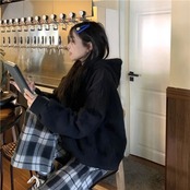 送料無料 アパレル Deeptown Kpop 黒作物フード付きスウェット女性 Y2k ヒッピーストリート長袖パーカースタイルオーバーサイズルーズプルオーバー ロング ブラック シャツ AE121288787760062233551 | mihatudai(みはつばい)ネットショッピングならmihatudai