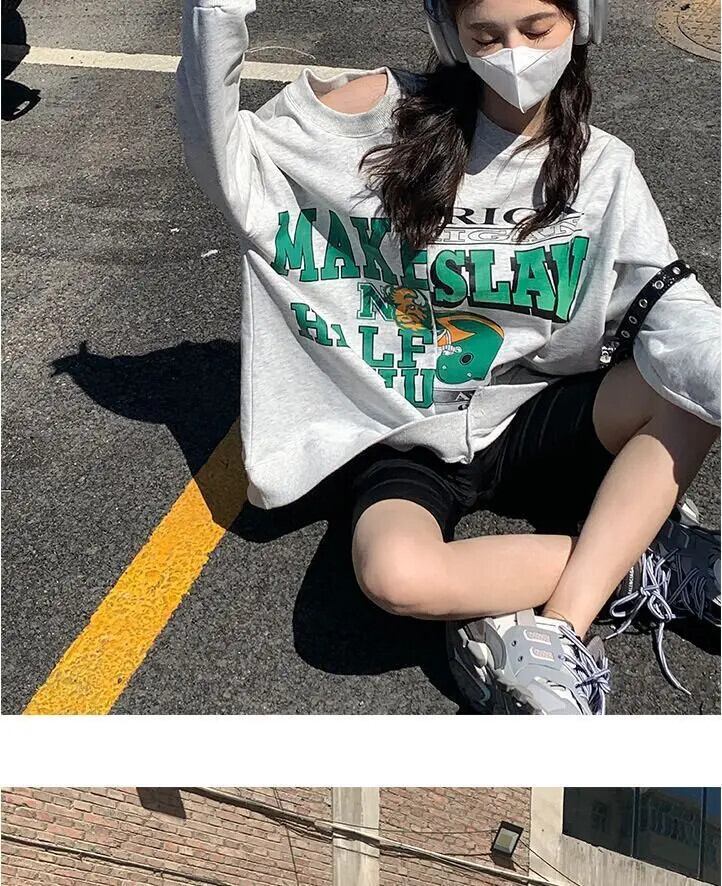 送料無料 アパレル Deeptown Y2k Kpop オフショルダーグレースウェット女性スタイルレター不規則な長袖プルオーバー原宿オーバーサイズトップス ロング シャツ かわいい AE121288787774909355377 | mihatudai(みはつばい)ネットショッピングならmihatudai