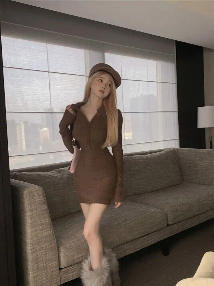 送料無料 アパレル Deeptown スタイルブラウンミニ冬のドレスの女性 Y2k コケット長袖ワンピースドレスヴィンテージホットガールズタイト Vestidos ロング ウィンター 冬物 ビンテージ AE12128878778773712485 | mihatudai(みはつばい)ネットショッピングならmihatudai