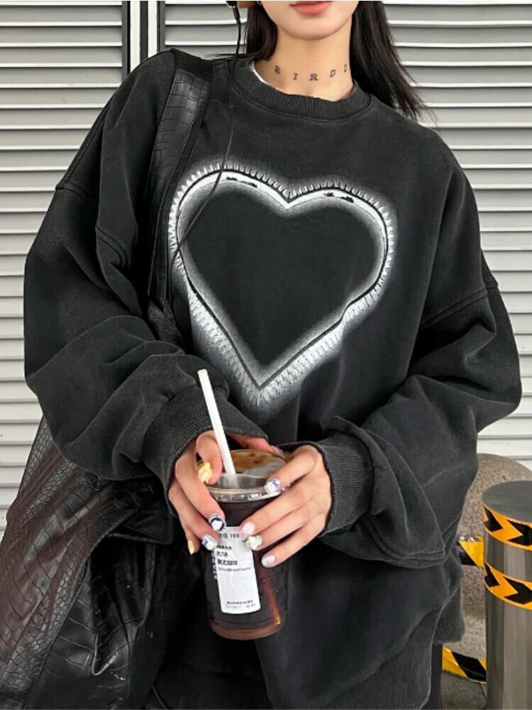 送料無料 アパレル Deeptown Y2k グランジハート黒スウェット女性サイバーパンク長袖プルオーバーゴシック原宿ストリートオーバーサイズルーズトップス ロング ブラック シャツ かわいい AE121288787737185195653 | mihatudai(みはつばい)ネットショッピングならmihatudai