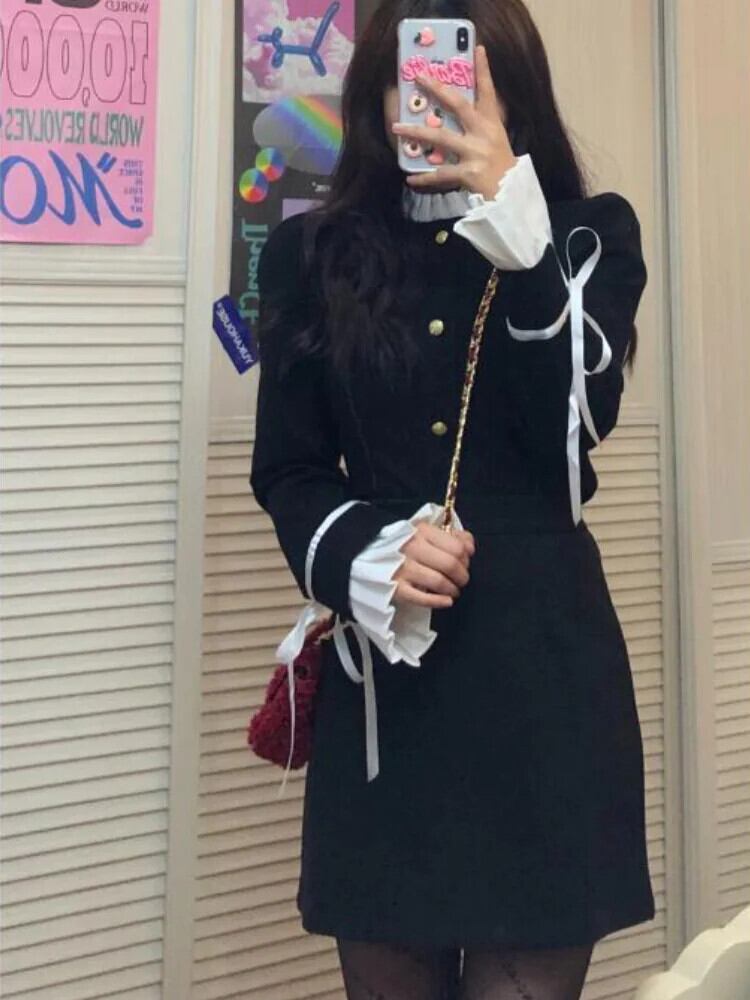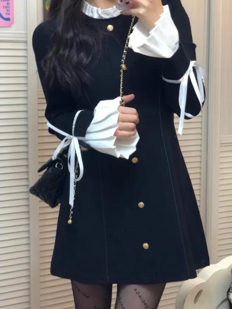 送料無料 アパレル Deeptown スタイルワンピース黒ミニドレス女性ヴィンテージフリルレースアップコルセット長袖チュニックドレス秋 ロング ブラック ラッフル オータム 秋物 ビンテージ AE121288787743353004265 | mihatudai(みはつばい)ネットショッピングならmihatudai