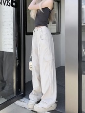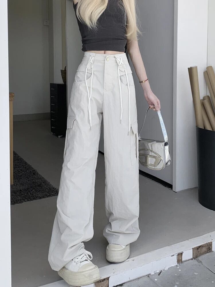 送料無料 アパレル Deeptown Y2k ヒッピーグレーカーゴパラシュートパンツ女性 Kpop オーバーサイズだぶだぶのズボン包帯ストリートワイドレッグパンタロン ワイドパンツ AE121288787767663436736 | mihatudai(みはつばい)ネットショッピングならmihatudai