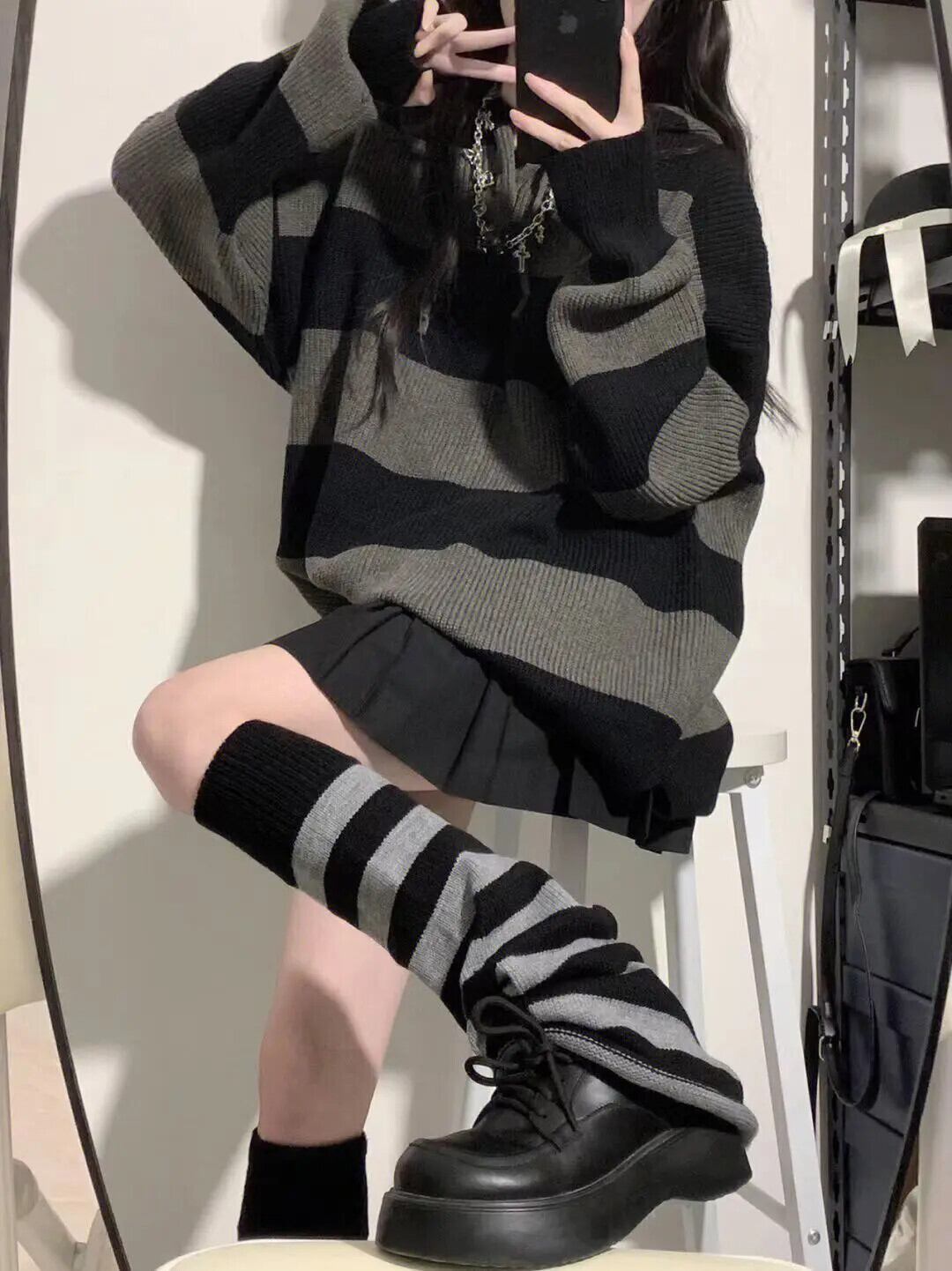 送料無料 アパレル Deeptown ヴィンテージストライプフード付きセーター女性原宿ゴシックニットジャンパーレトロルーズ特大プルオーバートップスグランジ かわいい ビンテージ AE121288787790587786882 | mihatudai(みはつばい)ネットショッピングならmihatudai